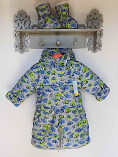 Комбинезон-трансформер с отстегивающейся меховой подстежкой (счес натуральной овечьей шерсти на трикотажной основе).Подстежка фиксируется на молнии в капюшоне, грудке и полочке, также подстежка фиксируется кнопками в рукавах и штанишках. Можно использоват